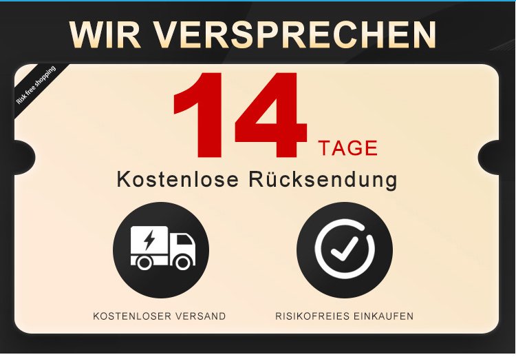Nachdem Sie die Ware erhalten haben, wenn Sie Qualitätsprobleme/Rücksendungen/Austausch haben, klicken Sie bitte, um eine E-Mail zu senden:ger@mall-red.com