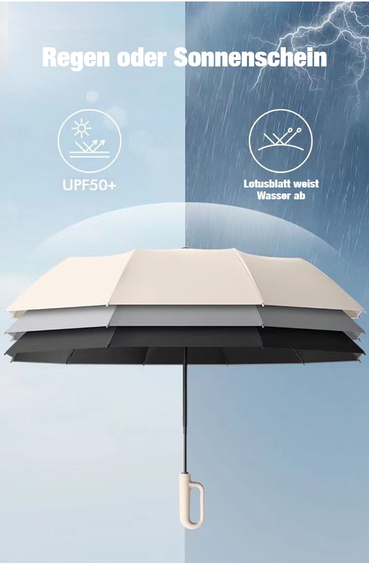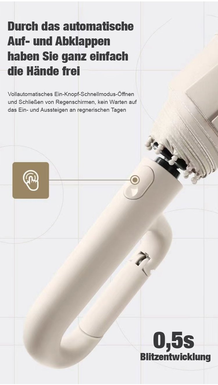 Vollautomatischer, äußerst strapazierfähiger Haken-Regenschirm für Sonne und Regen.